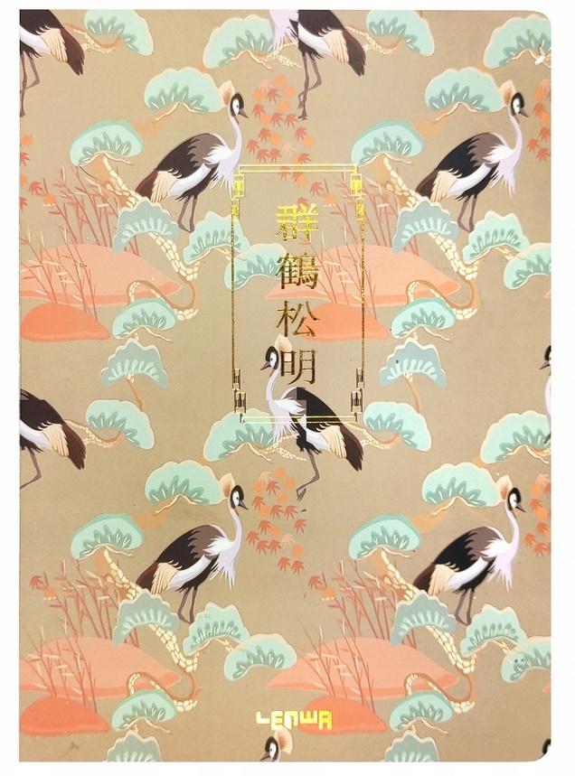Szkicownik B5 w twardej oprawie z niebanalną okładką przedstawiającą żurawie wśród orientalnej, kolorowej roślinności na tle w modnym kolorze taupe. Posiada 100 gładkich, szytych kartek o gramaturze 100gsm, w tym również kartki craftoraz czarne. Umożliwia to wykonywanie szkiców węglem, ołówkiem i kredkami.
