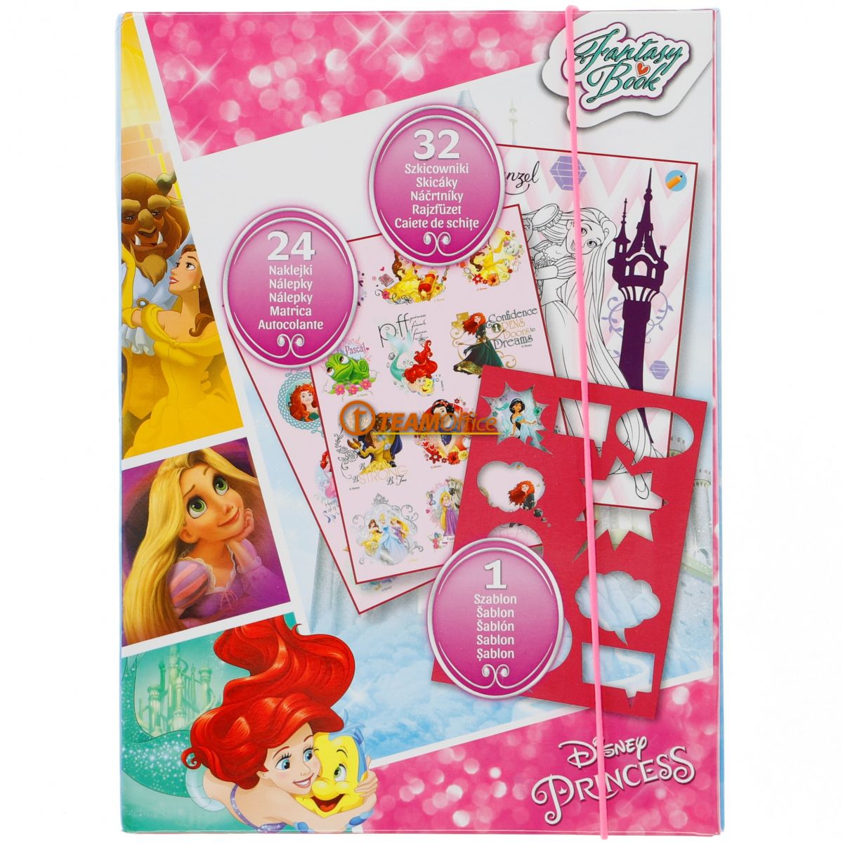 Szkicowniki Fantasy Book – Księżniczki to seria bajkowych wzorów, które przeniosą Cię w świat wyobraźni. Zestaw zawiera 32 obrazki, które możesz pokolorować, odwzorować, ozdobić naklejkami oraz zaprojektować niepowtarzalne stroje swoim bohaterkom . Dołączony do zestawu szablon wzbogaci każdy projekt o dialogi, dzięki którym powstaną piękne opowieści. Całość mieści się w bardzo poręcznym skoroszycie zamykanym na gumkę. Koloruj, naklejaj, baw się szablonami i twórz piękne kreacje.