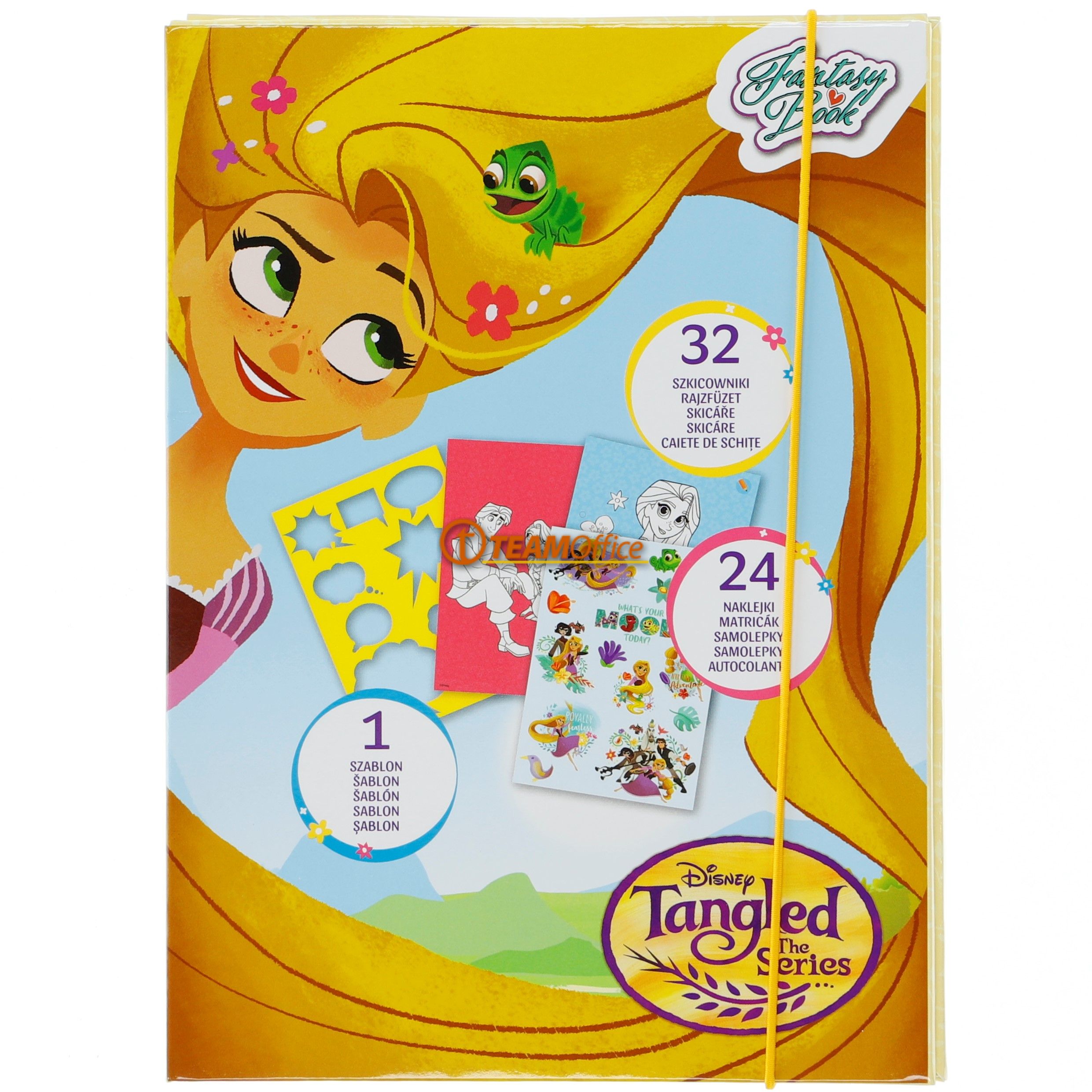 Szkicowniki Fantasy Book – Zaplątani to seria bajkowych wzorów, które przeniosą Cię w świat wyobraźni. Zestaw zawiera 32 obrazki, które możesz pokolorować, odwzorować, ozdobić naklejkami oraz zaprojektować niepowtarzalne stroje swoim bohaterom . Dołączony do zestawu szablon wzbogaci każdy projekt o dialogi, dzięki którym powstaną piękne opowieści. Całość mieści się w bardzo poręcznym skoroszycie zamykanym na gumkę. Koloruj, naklejaj, baw się szablonami i twórz piękne kreacje.