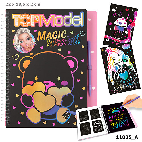 Zestaw kreatywny Magic Scratch TOPModel, w zestawie 16 stron do samodzielnego kreowania projektów, instrukcja i rysik.