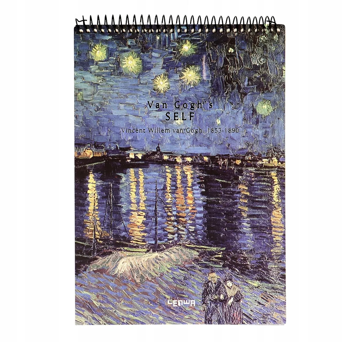 Blok na spirali w formacie B4, gramatura 100g. Zawiera40arkuszy kremowego papieru o lekkiej strukturze. Zarówno przednia okładka miękka jak i tylna teksturka przedstawiają reprodukcję obrazu autorstwa Van Gogha "Gwiaździsta Noc nad Rodanem". Szkicownik posiada plastikowy uchwyt ułatwiający przenoszenie i umożliwiający wieszanie go na haczyku.