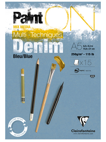 Blok klejony Mix Media "Paint On Denim blue" , niebieski drobnoziarnisty papier bezkwasowy, A4, 15 ark. 250g,