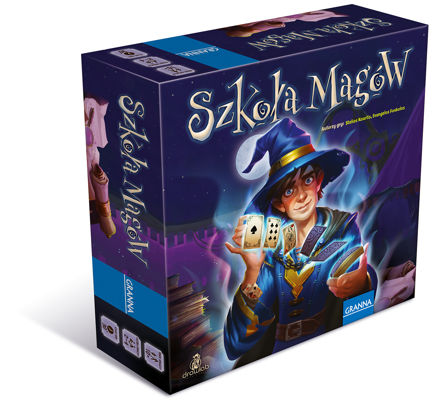 Gracze wcielają się w rolę uczniów Szkoły Magów. Zbliża się wielki turniej zaklęć. Podczas magicznego pojedynku liczyć się będzie refleks, szybkość rzucania czarów i umiejętne wyczucie czasu. Szkoła Magów to wyjątkowa gra kościana, w której pojedynek toczy się w czasie rzeczywistym. Opanuj sześć żywiołów i zostań najpotężniejszym czarodziejem jakiego widział świat. Wiek: 10+ Liczba graczy: 2-4
