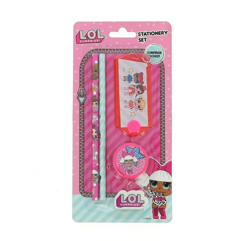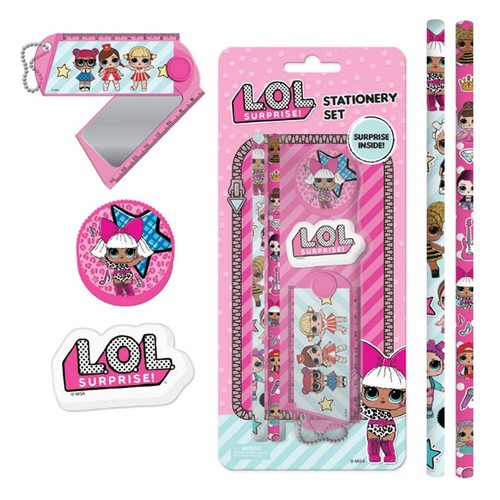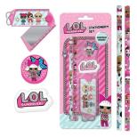 LOL Zestaw szkolny zawiera: dwa ołówki temperówkę gumkę L.O.L. Linijkę składaną.15 cm