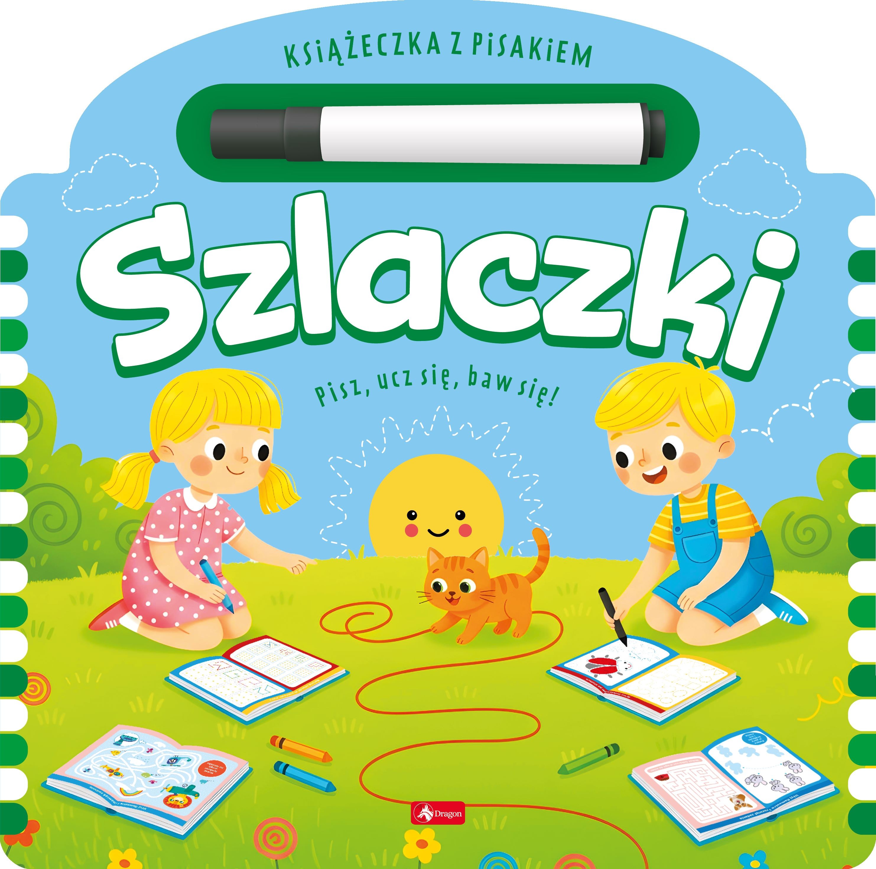 Każda z książeczek zawiera zabawy i ćwiczenia wspomagające pierwsze próby rysowania i pisania. Do książeczki dołączony jest zmywalny pisak, który pozwala na wielokrotną zabawę i ćwiczenia. Dziecko uczy się poprawnie trzymać pisak, ćwiczy cierpliwość i dokładność. Książeczki przeznaczone są dla dzieci w wieku 4+