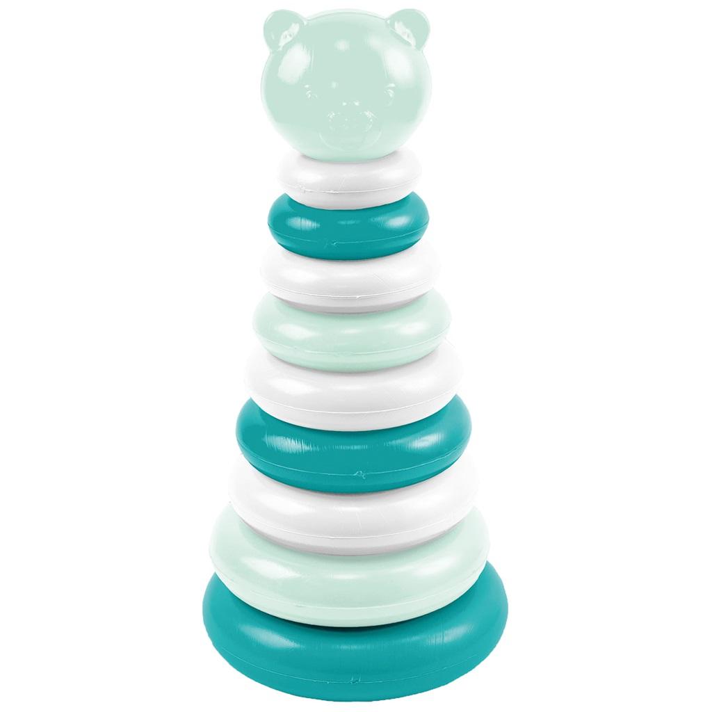 Misiowa Piramidka w kolorze nasyconego turkusu, mlecznej mięty oraz bieli, składa się z podstawy ze słupkiem, na który dziecko nakłada różnej wielkości kółka, w kolejności od największego do najmniejszego, na końcu nakłada ostatni element, główkę misia, która wieńczy całą budowlę. Dziecko podczas zabawy ćwiczy precyzyjne ruchy dłoni, koordynację ręka-oko niezbędną do wykonywania podstawowych czynności oraz do nauki pisania i rozwija zmysł logicznego myślenia.