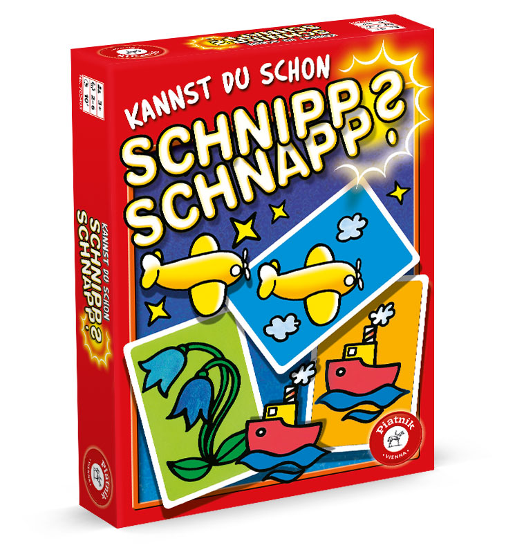 Zabawna gra karciana dla 2 - 6 dzieci od 3 lat. Sznip-Sznap to zabawna gra, która rozwija refleks i spostrzegawczość. Karty rozdawane są graczom, którzy układają je przed sobą w formie talii, obrazkami do dołu. Wszyscy gracze jednocześnie odkrywają wierzchnie karty ze swoich talii, mówiąc przy tym "sznip!". Gdy ktoś zauważy, że inny gracz odkrył taką samą kartę, woła "sznap!". Oprócz gry klasycznej jest możliwość zagrania w dwa inne warianty.