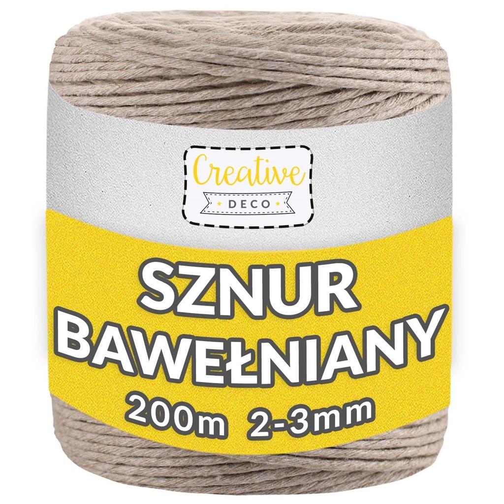 "DUŻY ROZMIAR - Dzięki długości 200m i grubości 2-3 mm, sznurek bawełniano-poliesterowy Creative Deco jest długi i wystarczająco gruby, co sprawia, że doskonale nadaje się do wielu projektów artystycznych. Jest miękki, ale znacznie wytrzymalszy od zwykłych sznurków dzięki domieszce poliestru (20%). Zapakowany w formie szpulki nie plącze się, można go przycinać na dowolną długość. SZEROKIE ZASTOSOWANIE - Ze względu na swój intensywny kolor, sznurek Creative Deco jest idealny do pakowania, owijania, ozdabiania, wieszania, stosowania w ogrodzie i do prac rzemieślniczych. Można go używać do pakowania prezentów bożonarodzeniowych, do ręcznego pakowania kartek okolicznościowych, do ozdabiania wazonów, do przywiązywania roślin w ogrodzie i wielu innych. ELASTYCZNOŚĆ - Dzięki dodatkowi poliestru, sznurek Creative Deco charakteryzuje się wyjątkową elastycznością i szybko wraca do pierwotnej formy. Dzięki temu możesz mieć pewność, że Twój sznurek nie straci swoich pierwotnych właściwości i będzie służył dłużej. WYPRODUKOWANE W POLSCE - Martwisz się, że Twój sznurek bawełniany nie pochodzi z wiarygodnego źródła? Wybierz markę Creative Deco - wszystkie składniki naszych produktów pochodzą z UE, co gwarantuje, że spełniają wszystkie normy prawne zarówno lokalne jak i krajowe."