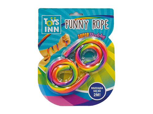 Super rozciągliwa Funny Rope to idealna zabawka relaksacyjna. Pełna kolorów, miękka linka rozciąga się z długości 30 cm do 2 m, gwarantując dużo radości. Zestaw zawiera 2 identyczne linki.