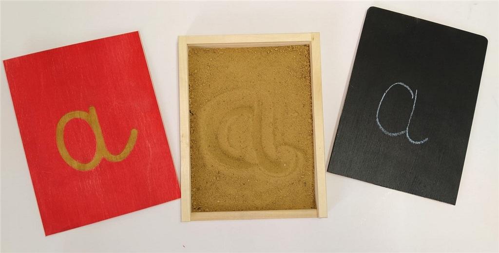 - pudełka z piaskiem oraz wieczkiem pokrytym farbą tablicową