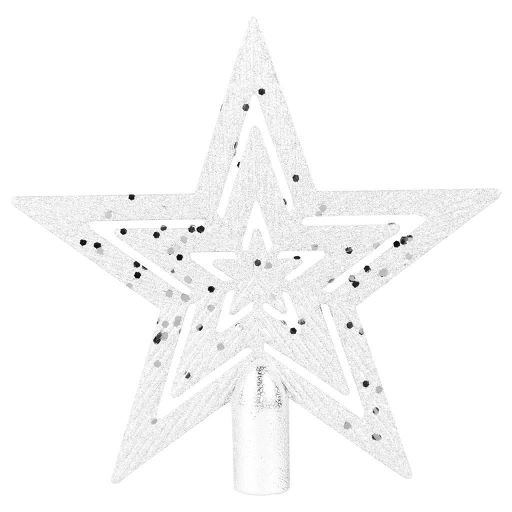 Szpic dekoracyjny na choinkę w kształcie gwiazdy w kolorze białym. Błyszcząca gwiazda pokryta drobnym brokatem z elementami dużych płatków brokatu. Pięknie mieni się pośród blasku choinkowych lampek. Uniwersalna dekoracja choinki pasująca do innych ozdób. Dopełnia finalną dekorację świątecznego drzewka. Gwiazda o wymiarze 20 cm. Produkt wykonany z wytrzymałego tworzywa sztucznego.