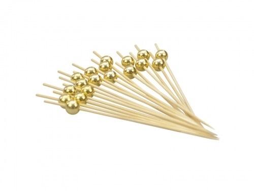Drewniane wykałaczki z linii Celebrate! z dekoracyjnymi kulkami. Opakowanie zawiera 24 sztuk. Długość: 12 cm.