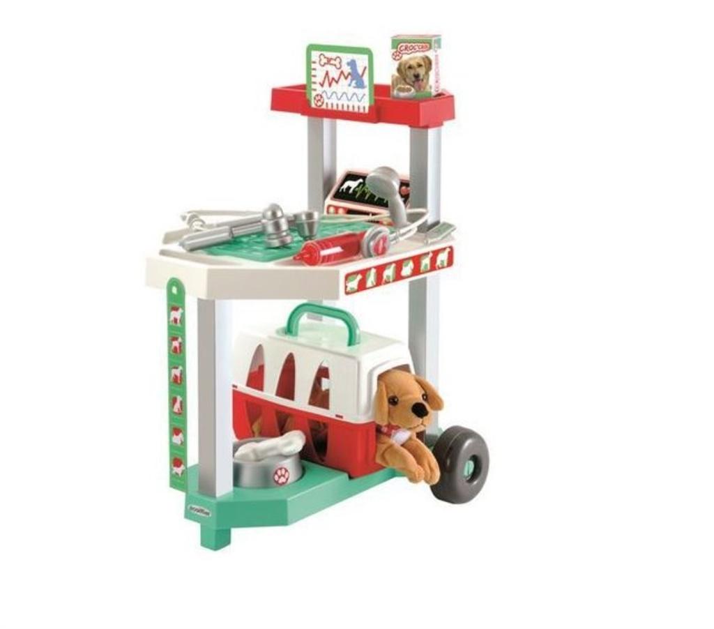 Na dole znajduje się miejsce na umieszczenie transportera z pieskiem. Górna część stołu asygnowana jest natomiast do badania i leczenia zwierzątek domowych. Przeznaczony dla dzieci od 18. Miesiąca życia.