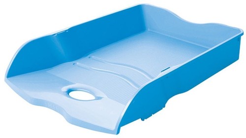 elegancka szufladka na biurko nowoczesny kształt w części z powierzchnią karbowaną otwór w podstawie oraz wycięcia po bokach ułatwiające użytkowanie możliwość ustawianie szufladek na sobie wykonany z odpornego na pęknięcia i odkształcenia polistyrenu w tej serii dostęne również przybornik, kosz na śmieci, pojemnik na czasopisma format: A4/C4 wymiary: 259x63x351mm kolor: jasnoniebieski