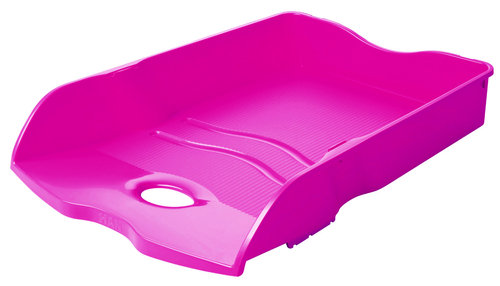 elegancka szufladka na biurko nowoczesny kształt w części z powierzchnią karbowaną otwór w podstawie oraz wycięcia po bokach ułatwiające użytkowanie możliwość ustawianie szufladek na sobie wykonany z odpornego na pęknięcia i odkształcenia polistyrenu w tej serii dostęne również przybornik, kosz na śmieci, pojemnik na czasopisma format: A4/C4 wymiary: 259x63x351mm kolor: różowy