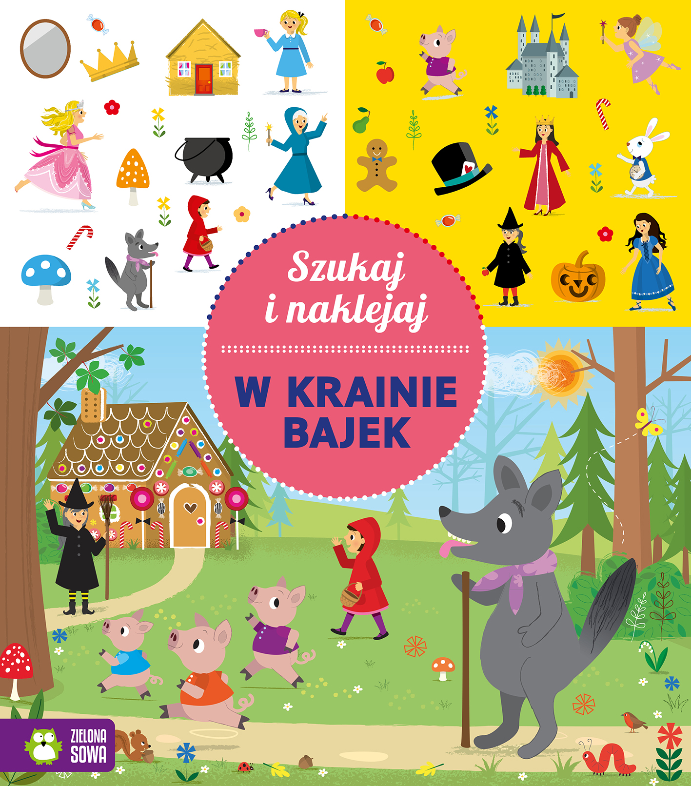 Który krasnoludek ma czerwoną czapeczkę? Czy znajdziesz dwa takie same piernikowe ludziki? Który ptaszek pojawia się dwa razy na obrazku? Otwórz tę książkę z kolorowymi naklejkami i odwiedź magiczną krainę bajek! Czekają na Ciebie Kopciuszek, Śpiąca Królewna, Czerwony Kapturek czy Jaś i Małgosia. Przyjrzyj się uważnie obrazkom. Odpowiedz na pytania i przyklej naklejki we właściwych miejscach. Dobrej zabawy! „Szukaj i naklejaj” to seria książek dla dzieci z naklejkami. Na każdej stronie znajdziesz ciekawe ilustracje, zestawy naklejek oraz zadania do wykonania.Przyklejaj naklejki, szukaj różnic i rozwiązuj zagadki! Z tymi książkami będziesz się nie tylko dobrze się bawić, ale również rozwijać spostrzegawczość. Zabawa z naklejkami to też dobry sposób na ćwiczenie motoryki ręki.