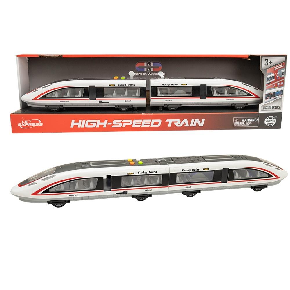 "Szybka kolejka Wagony łączone na magnez, w momencie podłączenia wagoników włączają się światła 4 dźwięki - jazdy pociągu, alarmowy, dźwięk zatrzymynia, sygnał ciągły, otwierane drzwi Wymiary kolejki 57 x 5.5 x 7 cm Wymiary opakowania: 59 x 10 x 17 cm Zasilanie: 6xAG13 (dołączone) Wiek 3+"