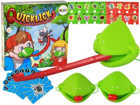 Zabawna Gra Zręcznościowa Szybki Język Żaba - Złap Owada Maska Żabka Sprawdźcie swój refleks, zręczność i spryt przy sporej dawce adrenaliny, doskonałej zabawy i salw śmiechu. Ta zabawna gra zręcznościowa zachwyci zarówno dzieci jak i dorosłych. Zasady zabawy są bardzo proste. Gra przeznaczona jest dla dwóch graczy w maskach. Zalecany udział również trzeciej osoby w roli sędziego i rozdającego. W celu przygotowania do zabawy należy złożyć maski (do uśmiechniętej buźki żabki montujemy gumki oraz rozwijane trąbki). Składamy także zielone (czerwone z drugiej strony) karty aby móc postawić je w pionie. Gracze w maskach siadają naprzeciwko siebie. Na stole układamy rząd zielonych owadów. Każdy z nich dla ułatwienia ma przyporządkowaną cyferkę. Osoba rozdająca tasuje czerwone karty, następnie wykłada jedną na stół. Zadaniem graczy jest jak najszybsze strącenie wylosowanego owada. Osoba, która pierwsza dostrzegła kartę z wylosowanym owadem oraz ją strąciła rozwijanym języczkiem zabiera czerwona kartę. Ostatecznie wygrywa osoba z większą ilością kart. Dla ułatwienia gry - robaczki można ustawić po kolei - tak aby cyferki naturalnie wzrastały. Dla utrudnienia gry - robaczki można wymieszać. Zestaw zawiera: - 2 maski żabki - języczki - karty z motywem owadów - oryginalne opakowanie Wymiary opakowania : 27 cm x 26 cm x 6 cm Zabawka przeznaczona jest dla dzieci powyżej 4 roku życia. Zestaw posiada certyfikat CE i jest zgodny z normą EN 71.