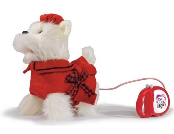 w zestawie znajduje się piesek Chi Chi Poshi sterowany za pomocą przewodowej smyczy