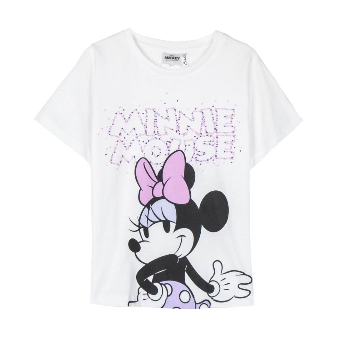 Bluzka dziewczęca Minnie w kolorze białym to wygodna i urocza koszulka z krótkim rękawkiem, idealna na co dzień do przedszkola, szkoły lub zabawy w domu i na świeżym powietrzu. W prostym fasonie z okrągłym dekoltem zapewnia komfort noszenia i swobodę ruchów.
