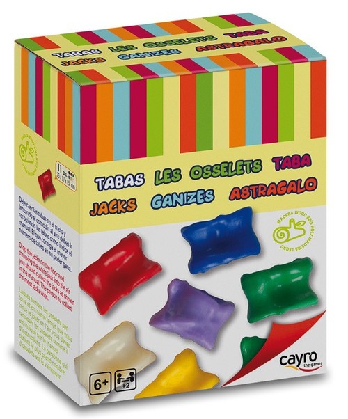 Kostki do gry "Tabas" to nieregularne elementy, wykonane z różnokolorowego plastiku. Kostki mają cztery pozycje lub strony, które mogą różnić się nazwami, w zależności od kraju czy regionu. Przykładowe nazewnictwo: Dziura - strona z małą dziurką w środku Brzuszek - przeciwna strona do dziury, gładka Baran - strona w kształcie cypla, przylądka Stół - strona przeciwna do barana, gładka Podwórkowa wersja tej gry, znana jest na naszym rodzimym gruncie pod nazwą "gra w kamyki". Wymaga ona maksymalnego skupienia oraz turbo szybkości. Oparta jest na prostych zasadach, ale wykonanie jest już dużo trudniejsze! Doskonale ćwiczy koordynację wzrokowo-ruchową, refleks i nadaje się doskonale zarówno dla dorosłych, jak i dzieci. Aby rozpocząć grę, należy rozrzucić na podłodze 10 kostek, po dwie w każdym kolorze. Następnie, należy podrzucić białą kostkę i zanim spadnie na podłogę, przełożyć wszystkie kostki leżące na podłodze na pierwszą pozycję - dziura. Czynność powtarza się, aż gracz przełoży kostki w kolejności: dziura - brzuszek - baran - stół. Wygrywa gracz, któremu uda się przełożyć wszystkie 10 kostek, na każdą z czterech stron, zanim podrzucana kostka spadnie na podłogę. Zawartość: 11 kostek (wymiary: 25x17x15 mm) instrukcja Wiek graczy: 6+ Liczba graczy: 2+