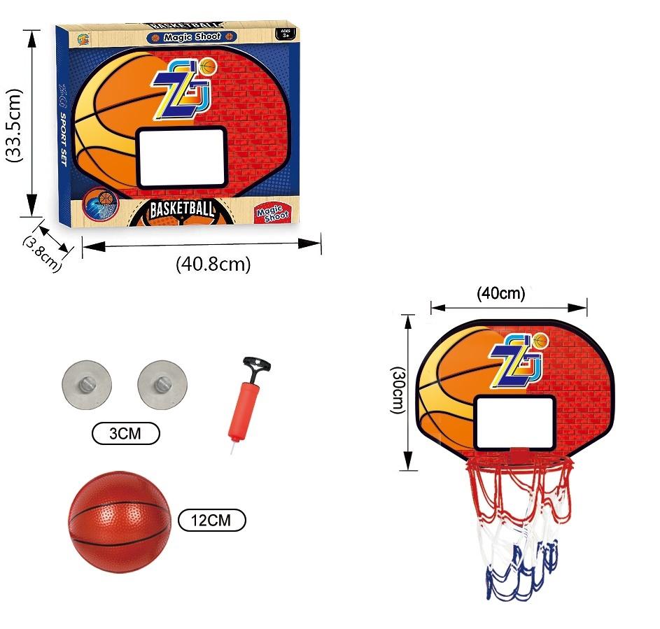 W zestawie tablica 40x30 cm, piłka 12 cm, mocowanie do przylgi, pompka.