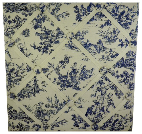 Ozdobna, wykończona tkaniną tablica z paskami do mocowania zdjęć.