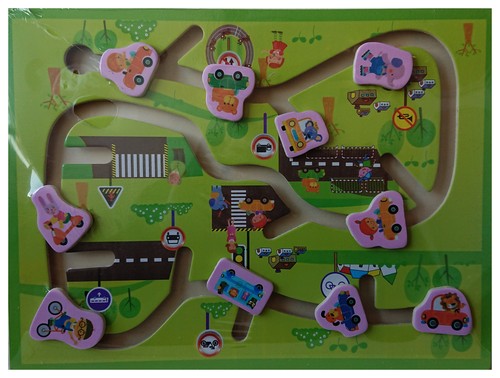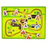 Drewniana tablica edukacyjna do zabawy z pojazdami. Zabawka dla dzieci w wieku od 3 lat.