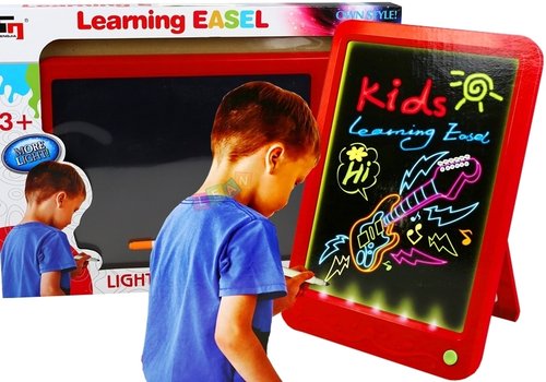 TABLICA FLUORESCENCYJNA Z PISAKAMI Przenośna tablica fluorescencyjna dla dzieci ze specjalnymi pisakami. Tablica solidnie wykonana w ładnej kolorystyce. Tablica posiada z tyłu rozkładane nóżki, dzięki czemu tablicę można postawić w dowolnym miejscu. Użyj wyobraźni i rysuj co tylko chcesz. Rysuj kolorowe obrazki fluorescencyjne i ciesz się świetną zabawą. Tablica jest podświetlana pod ekranem. Dzięki tablicy Twoje dziecko rozwija wyobraźnię, ćwiczy umiejętności plastyczne, uczy się poprzez zabawę. Wymiary opakowania: 66 cm x 52 cm x 36 cm
