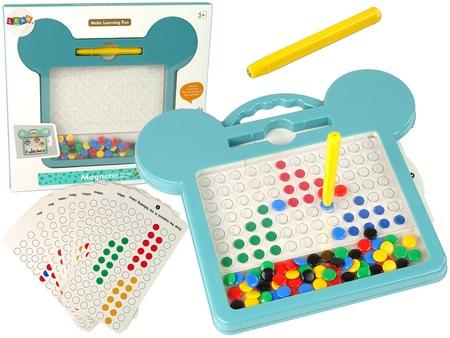Tablica Magnetyczna Kształty Obrazki Koraliki Rysik Karty Dzieci rozwijają swoje zdolności poprzez zabawę. Tablica to bardzo prosta zabawka edukacyjna, która swoimi zaletami rozwija zdolności manualne i plastyczne dziecka. Tworząc różne obrazki, pobudza swoją wyobraźnię i kreatywność. Jak działa tablica magnetyczna? Pod powierzchnią ekranu umieszczone są koraliki magnetyczne, za pomocą rysika spróbuj złapać jeden z koralików i przenieść w odpowiednie miejsce na planszy według wzoru. W zestawie znajdują się karty, które pokazują swojego rodzaju zadania, wystarczy uporządkować magnesiki według koloru i wzoru. Pod żadnym względem nie wolno używać na ekranie klasycznych długopisów, pisaków bądź piór atramentowych. Każdy obrazek można łatwo zmienić, można przechylić tablicę, a wszystkie koraliki spadną na dół. Czas zacząć zabawę od nowa! Wygodny górny uchwyt pozwoli zabrać ją ze sobą w podróż, czy na wycieczkę. Elementy zestawu: - tablica - koraliki x 60 - rysik - 12 kart Wymiary tablicy: 26 cm x 23 cm x 2 cm Wymiary opakowania: 30 cm x 28 cm x 2 cm Zgodne z normą EN71 i certyfikatem CE. Przeznaczony dla dzieci powyżej 3 roku życia.