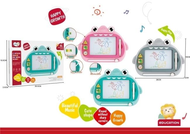 Odkryj magiczny świat kreatywności z uśmiechniętym rekinem, który stanie się ulubionym towarzyszem pierwszych artystycznych kroków Twojego dziecka. Ten interaktywny znikopis łączy w sobie radość rysowania z elementami edukacyjnymi, oferując maluchowi nieograniczone możliwości tworzenia bez bałaganu. Dzięki precyzyjnemu rysikowi i uroczym stempelkom każde pociągnięcie ręką zamienia się w unikalny obrazek, a wbudowane funkcje muzyczne stymulują zmysły i zachęcają do dalszej eksploracji. Bezpieczna konstrukcja o zaokrąglonych krawędziach została zaprojektowana specjalnie z myślą o małych rączkach, dbając o komfort i spokój rodziców podczas zabawy. Kiedy tablica wypełni się pomysłami, wystarczy jeden ruch suwakiem, aby przygotować czyste pole na nowe przygody. To doskonały wybór dla każdego, kto szuka zabawki wspierającej rozwój koordynacji wzrokowo-ruchowej w radosnej, muzycznej atmosferze.