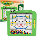 TABLICA MAGNETYCZNA DINOZAUR + 20 WZORÓW Tablica magnetyczna Dinozaur to wyjątkowa zabawka edukacyjna, która łączy naukę z kreatywną zabawą. Dzięki innowacyjnemu systemowi kolorowych krążków i rysika magnetycznego dziecko może tworzyć różnorodne obrazki bez użycia papieru, kredek czy farb. Wystarczy przesunąć rysik z magnesem po powierzchni tablicy, aby przyciągać i układać kolorowe punkty w wybranych miejscach. Cała magia dzieje się wewnątrz bezpiecznej konstrukcji - magnesy nie są dostępne na zewnątrz, co czyni zabawkę w pełni bezpieczną. Zabawka została stworzona z myślą o rozwoju zdolności manualnych, logicznego myślenia oraz koordynacji wzrokowo-ruchowej. Świetnie sprawdzi się w domu, przedszkolu, podczas podróży oraz jako narzędzie terapeutyczne. Do zestawu dołączono aż 20 wzorów do odwzorowania, które inspirują dziecko do działania, jednocześnie dając przestrzeń na tworzenie własnych, unikatowych kompozycji. Tablica magnetyczna to doskonała alternatywa dla tradycyjnego bloku rysunkowego - wielokrotnego użytku, poręczna i niezwykle angażująca. Idealna na prezent, który łączy zabawę z nauką. SPECYFIKACJA: Wymiary tablicy: 34 x 30 cm Wymiary opakowania: 35 x 31 x 3 cm Wymiary rysika: ok. 9,5 cm Materiał: wysokiej jakości tworzywo sztuczne Typ zabawki: tablica magnetyczna - mozaika Motyw: dinozaur Kolorystyka: żywe, przyciągające uwagę kolory Zastosowanie: zabawa edukacyjna, rozwój manualny i kreatywny ZAWARTOŚĆ ZESTAWU: Tablica magnetyczna Rysik magnetyczny Kolorowe krążki magnetyczne 20 wzorów do ułożenia (10 kart dwustronnych)