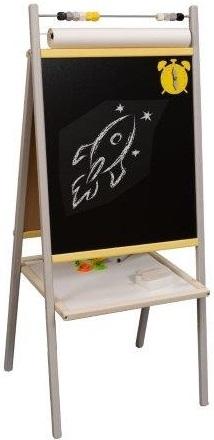 Średnia magnetyczna dwustronna tablica drewniana - kolorowa z rolką papieru, liczydłem, zegarem. Gąbka, kreda, marker, literki magnetyczne w zestawie.