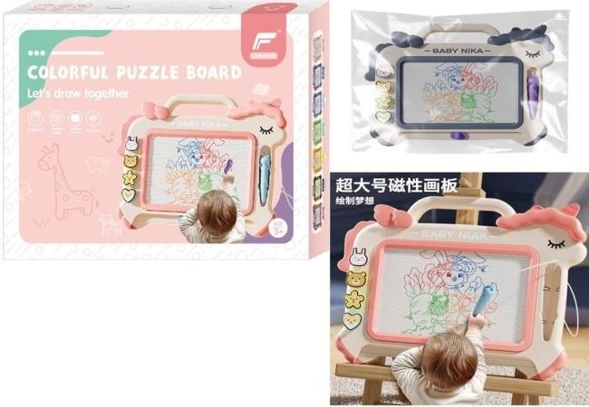 Odkryj fascynujący świat rysowania z urokliwym znikopisem w kształcie magicznego jednorożca, który stanie się ulubionym towarzyszem kreatywnych chwil Twojego dziecka. Ta innowacyjna tablica magnetyczna to idealne rozwiązanie dla małych artystów, oferujące czystą i bezpieczną przestrzeń do wyrażania siebie bez ryzyka poplamienia mebli czy ubrań. Pastelowe kolory i przyjazny design zachęcają do chwycenia za magnetyczny rysik, a wielobarwny podkład pod ekranem sprawia, że każdy wykonany obrazek nabiera radosnych i zaskakujących odcieni. W zestawie znajdują się cztery unikalne stempelki - króliczek, misio, gwiazdka oraz serduszko - które pozwalają na błyskawiczne ozdabianie rysunków powtarzalnymi wzorami i budowanie ciekawych kompozycji. Lekka konstrukcja z wygodnym uchwytem pozwala zabrać tablicę w każdą podróż, zapewniając dziecku angażujące zajęcie w samochodzie, pociągu czy poczekalni. To doskonałe narzędzie do ćwiczenia koordynacji wzrokowo-ruchowej oraz pierwszych prób pisania liter i cyfr, które w naturalny sposób łączy edukację z beztroską radością tworzenia. Dzięki trwałemu wykonaniu i braku luźnych elementów brudzących, znikopis jest praktycznym wyborem dla rodziców ceniących porządek i kreatywny rozwój swoich pociech.