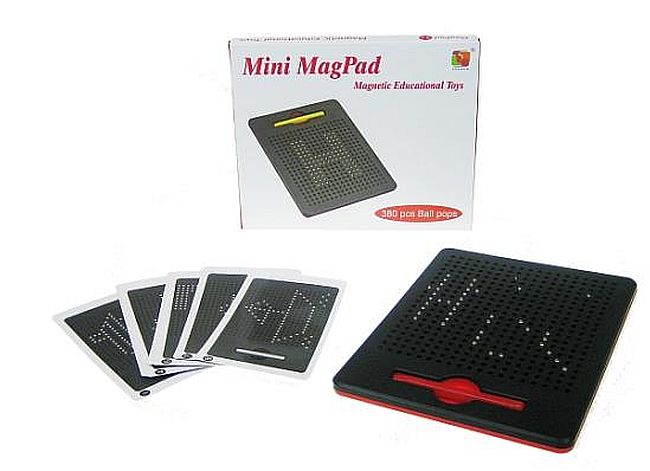 Zabawa polega na rysowaniu załączonym rysikiem z magnesem przy dotknięciu rysika do talicy wysuwają się kuleczki - powstają napisy lub obrazki.