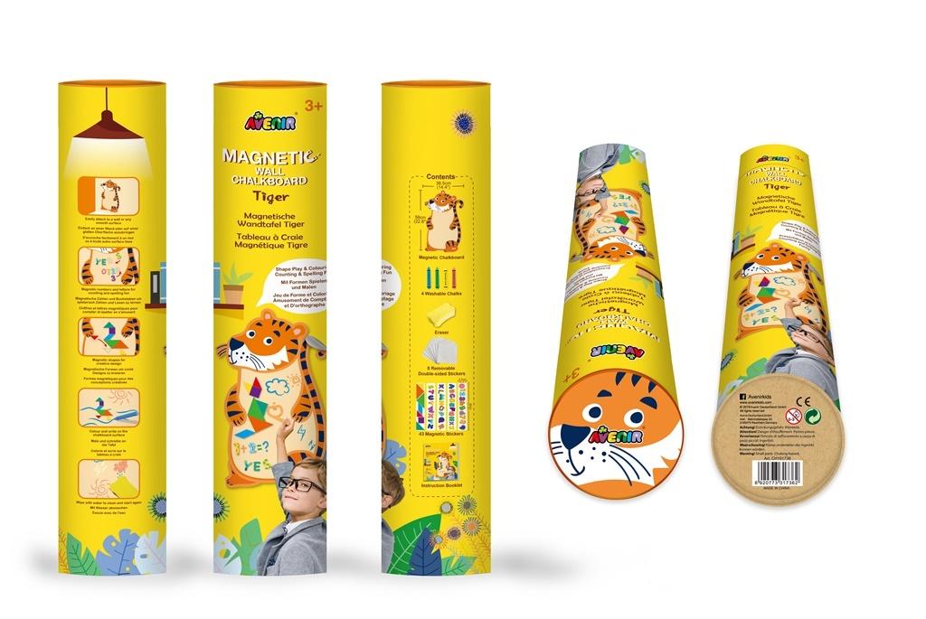 Tablicę można łatwo zamocować na ścianie albo każdej gładkiej powierzchni. Dołączone do zestawu cyferki i literki pozwolą dziecku na naukę czytania, a magnetyczne trójkąty na zabawę w tangram. Specjalne magnesy w kształcie przedmiotów znanych dziecku z codziennego życia pozwoli na ułożenie planu dnia lub zabawy w dopasowywanie przedmiotów i czynności do pory dnia.