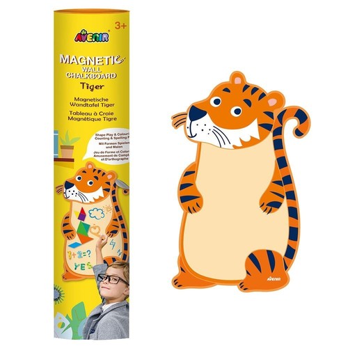 Urocza tablica magnetyczna w kształcie tygryska ma wymiary około 58 x 36 cm.