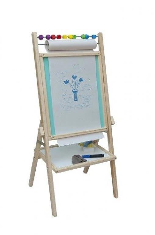 Obrotowa, suchościeralno-kredowa tablica z rolką papieru i liczydłem. Kolory tablicy: na kredę czarny, na marker miętowy. Oprócz liczydła i papieru wyposażona w gąbkę i kredę. Marker w zestawie.