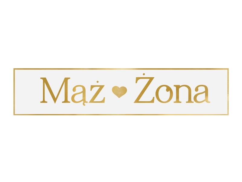 Tablica rejestracyjna w kolorze białym ze złotym lustrzanym napisem Mąż & Żona, szerokość ok. 59 cm, wysokość ok.11,5 cm