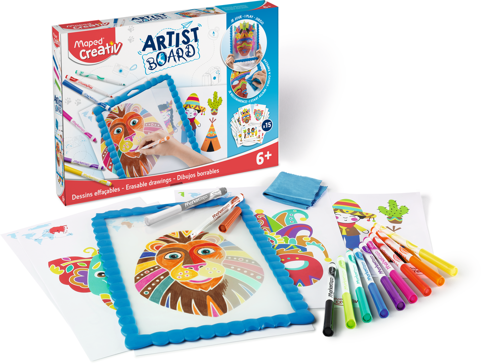 Rysuj i baw się gdziekolwiek jesteś! Transparentna tablica suchościeralna Maped Creativ jest idealna do tworzenia rysunków w oparciu o dołączone szablony. Szablon podkładamy pod tablice i odrysowujemy obrazek za pomocą dołączonych markerów suchościeralnych. Bardziej doświadczeni artyści mogą tworzyć własne kompozycje. Idealna do zabawy w domu lub przedszkolu. Można ją też zabrać ze sobą w podróż.