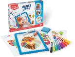 Transparentna tablica suchościeralna do zabawy na wiele godzin. Zestaw w pudełku o wymiarach 24,3x34,3x5,2 cm. Zawiera 1 tablicę, 1 ściereczkę, 1 flamaster do precyzyjnego zmazywania, 10 flamastrów w różnych kolorach i 15 szablonów. Dla dzieci od 6 roku życia