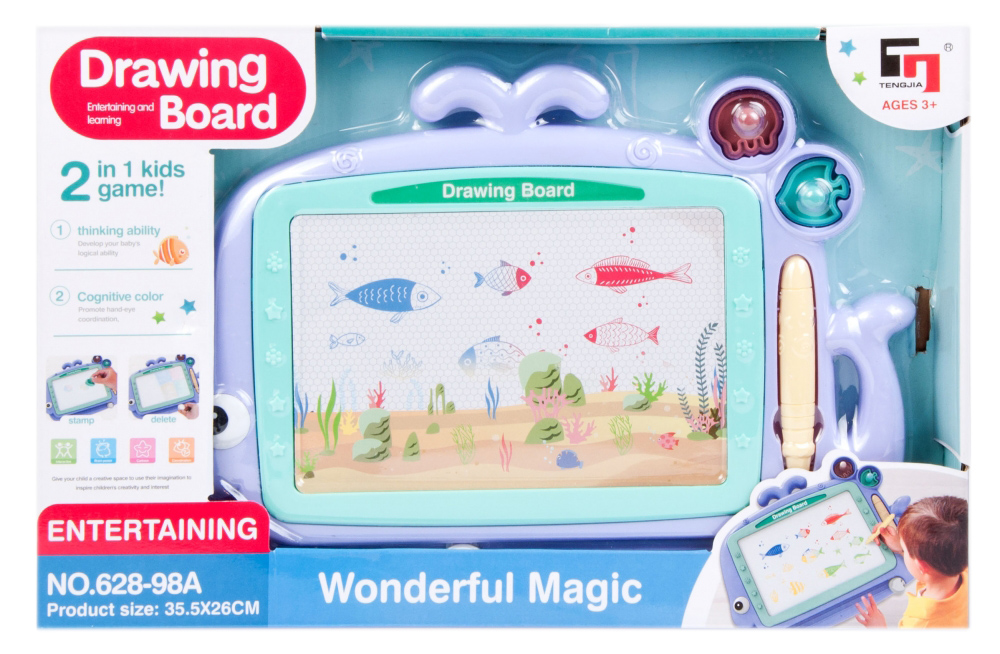 Znikopis MEGA CREATIVE to być może powierzchnia, na której powstanie pierwsze dzieło sztuki Twojej pociechy Zawartość zestawu Znikopis, magnetyczny rysik, magnetyczne pieczątki.