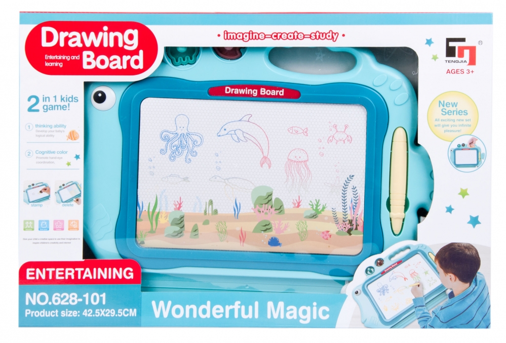 Zalety produktu rozwijanie wyobraźni, rozwijanie zdolności manualnych, rozwijanie zdolności artystycznych, rozwijanie kreatywności. Znikopis to najlepsze pomysły na naukę rysowania Twojego dziecka. Nie musisz się przejmować czy linia będzie prosta czy krzywa, jeżeli coś nie wyjdzie, łatwo zmażesz to jednym ruchem. Znikopis MEGA CREATIVE to być może powierzchnia, na której powstanie pierwsze dzieło sztuki Twojej pociechy Zawartość zestawu Znikopis, magnetyczny rysik, magnetyczne pieczątki. Produkt wykonany z plastiku, przeznaczony dla dzieci w wieku 3