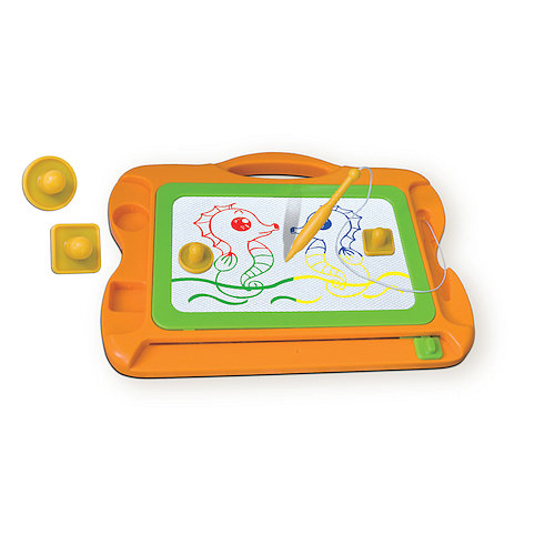 Zasada działania jest dokładnie taka sama jak w pierwszych tego typu tablicach magnetycznych. Specjalny suwak pozwala na ""wymazanie"" malowidła i po chwili kolejny obraz można tworzyć od początku.