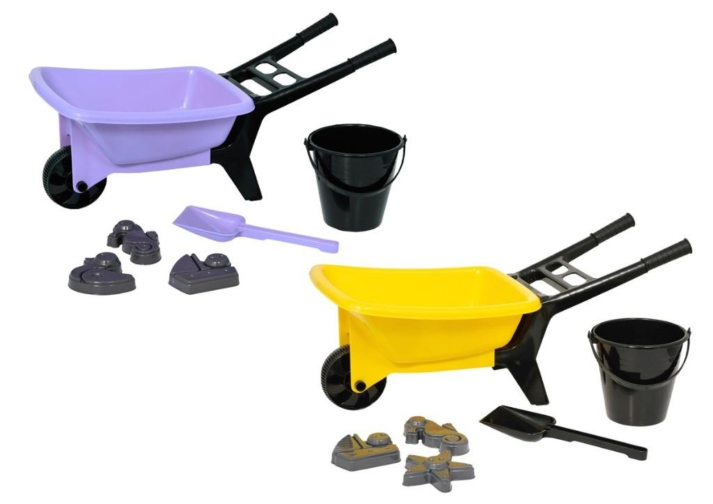 Taczka 56 cm z akcesoriami do piasku, 2 kolory Żółta/Liliowa PLASTO