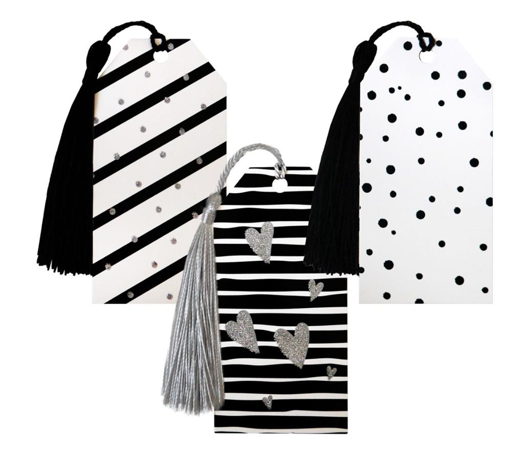 Opakowanie Tagi prezentowe z chwostem biało-czarne 6szt