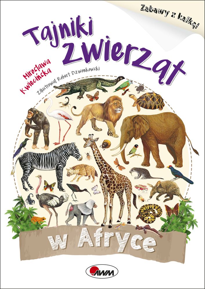 Seria SEKRETY ZWIERZĄT. ZABAWY Z KALKĄ •przedstawia zwierzęta mieszkające na różnych kontynentach •rozbudza ciekawość światem zwierząt •zawiera interesujące informacje •jest pięknie zilustrowana •dzięki kalce pozwala dokładnie narysować i pokolorować zwierzęta •proponuje wiele ciekawych zadań •stawia szczególne wyzwanie – pokonanie wielkiego labiryntu •wzbogaca słownictwo •uczy szacunku dla przyrody W Afryce W krótkiej formie prezentuje sylwetki wybranych interesujących bezkręgowców, ryb, płazów, gadów i ssaków żyjących w Afryce. Dzięki kalkom dziecko może nabrać wprawy w rysowaniu m.in. marabuta i lwa.
