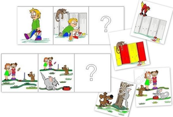 Zestaw historyjek obrazkowych do opowiadania, w których to dzieci decydują o zakończeniu.Pojedyncze serie opisują różne historie i mają 2 możliwości zakończeń do wyboru. Umożliwia to wprowadzenie do języka pojęć dobrze, źle i wielostronnie je wykorzystywać. Czy historia skończy się tak, czy tak rozstrzygają dzieci opowiadając według swojej własnej interpretacji.Opis6 3-częściowych mini-historyjek na 3 planszach A4,12 kartoników do dokładania o wym. 9,5 x 9,5 cm z kolorowymi ilustracjami (po 2 możliwe rozwiązania historii),instrukcja.WykorzystaniePrzedszkolePierwszy rok nauki szkolnejPedagogika specjalnaZajęcia z języka obcegoCele i etapy naukiUmiejętność rozpoznawania przebiegu wydarzeń oraz ich następstwa czasowegoKształtowanie myślenie przyczynowo-skutkowego. Rozważanie i formułowanie możliwych zakończeń historii.Zastanawianie się i formułowanie argumentacji oraz ocena zachowań bohaterów.Wypowiadanie się ustne i pisemne.Zawartość:1) Kot i pies2) Na plaży3) Jesienne liście4) Wędkarz5) Malarz6) Mali przyjaciele