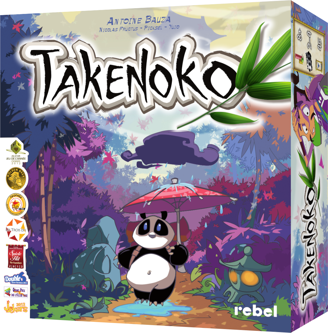 Dawno dawno temu, na japońskim cesarskim dworze… Po długiej serii sporów, relacje dyplomatyczne pomiędzy Japonią a Chinami w końcu się poprawiły. Aby odpowiednio uczcić tę zgodę chiński cesarz ofiarował japońskiemu władcy święte zwierzę, dużego misia pandę, symbol pokoju. Japoński cesarz powierzył ludziom ze swojego dworu (graczom) trudne zadanie zadbania o zwierzaka i przygotowanie dla niego ogrodu bambusowego. Gracze będą pielęgnować pola uprawne, nawadniać je i uprawiać na nich jeden z trzech rodzajów bambusa (zielony, żółty i różowy) przy pomocy cesarskiego ogrodnika. Swą rolę odegra także pogoda, od słonecznych dni, po poru monsunowe. Będą musieli także znosić wilczy apetyt pandy, łasej na soczyste pędy bambusa… Gracz któremu uda się zdobyć najwięcej punktów poprzez odpowiednią uprawę bambusa i karmienie pandy wygra grę. Takenoko jest niebanalną grą o stosunkowo prostych zasadach, w którą można grać w dowolnym gronie. Tematyka poruszona w grze oraz pierwszorzędne wykonanie elementów sprawiają, że obcowanie z tą pozycją jest niezwykle miłe i przyjazne da oka. W grę można grać już z dziećmi w wieku 8 lat, ale z doświadczenia wiemy, że przy pomocy rodziców świetnie radzą sobie z nią także 6 latki. Liczba graczy: 2 - 4 osoby Wiek: od 8 lat Zawartość pudełka: 28 płytek pól uprawnych 36 zielonych pędów 30 żółtych pędów 24 różowe pędy 20 kanałów nawadniania 9 usprawnień 46 kart celu 4 plansze graczy 8 żetonów akcji kość pogody figurka pandy figurka ogrodnika instrukcja