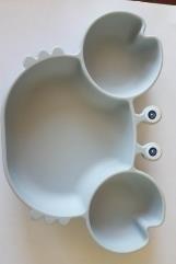 Razem z krabikiem odkryj radość z samodzielnego jedzenia! Uroczy talerzyk wyposażony jest w praktyczną przyssawkę zapobiegającą przesuwaniu się talerza. Wygodne przegródki ułatwią rozdzielanie posiłku na poszczególne składniki, tak, aby maluch mógł odkrywać smaki i konsystencję, ucząc się jeść wszystkimi zmysłami. Talerzyk wykonany został z silikonu, co ułatwia jego czyszczenie